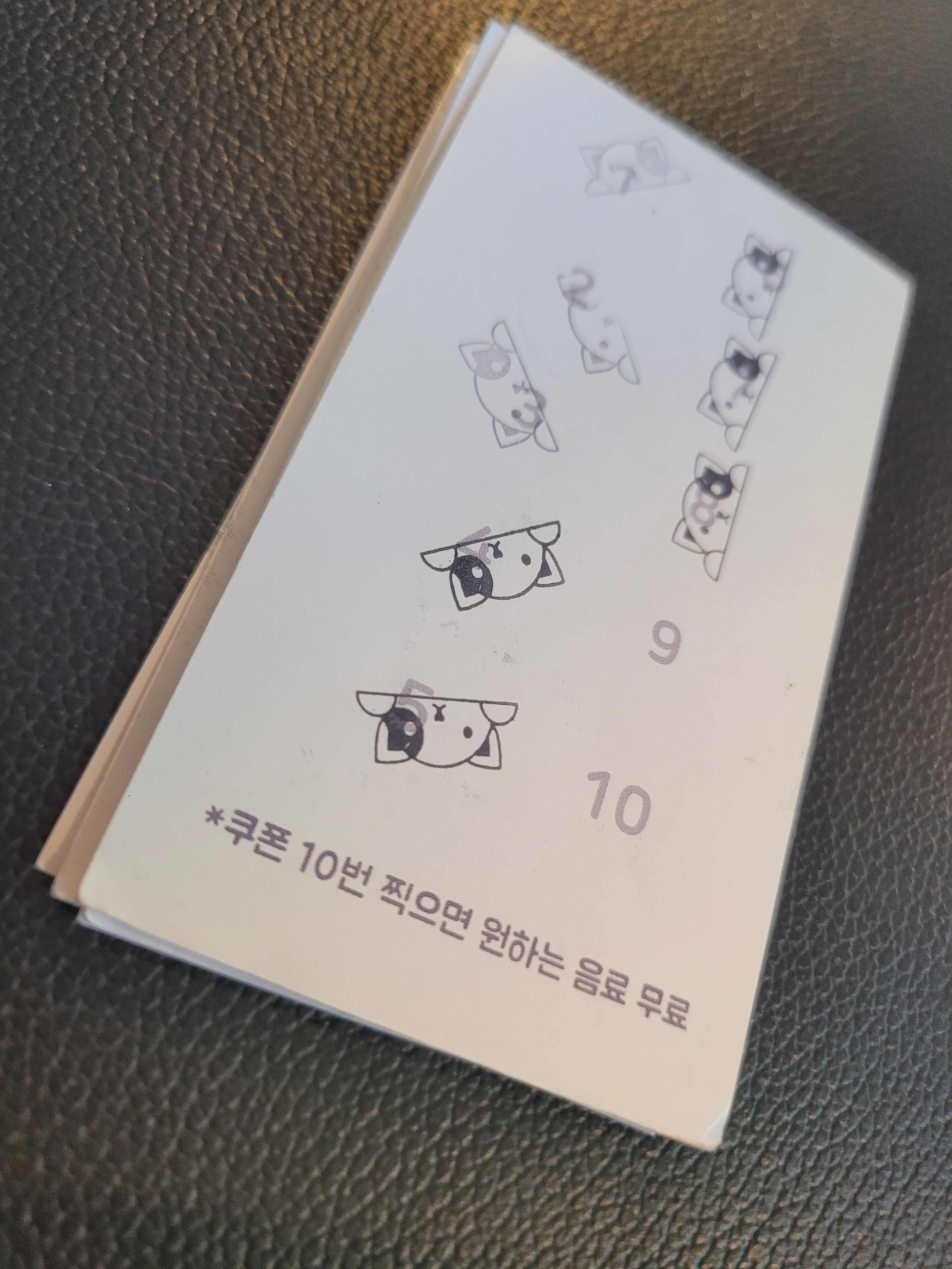 방문할때마다 쿠폰에 도장을 찍어주시는데 10번찍으면 원하는 음료가 무료 입니다. (저는 진짜 냥이툰을 너무나 애정하는 나머지 쿠폰에 도장이 아주그냥 막그냥 많아요 ㅋㅋㅋㅋㅋㅋㅋㅋㅋㅋㅋㅋㅋㅋㅋㅋㅋㅋ)