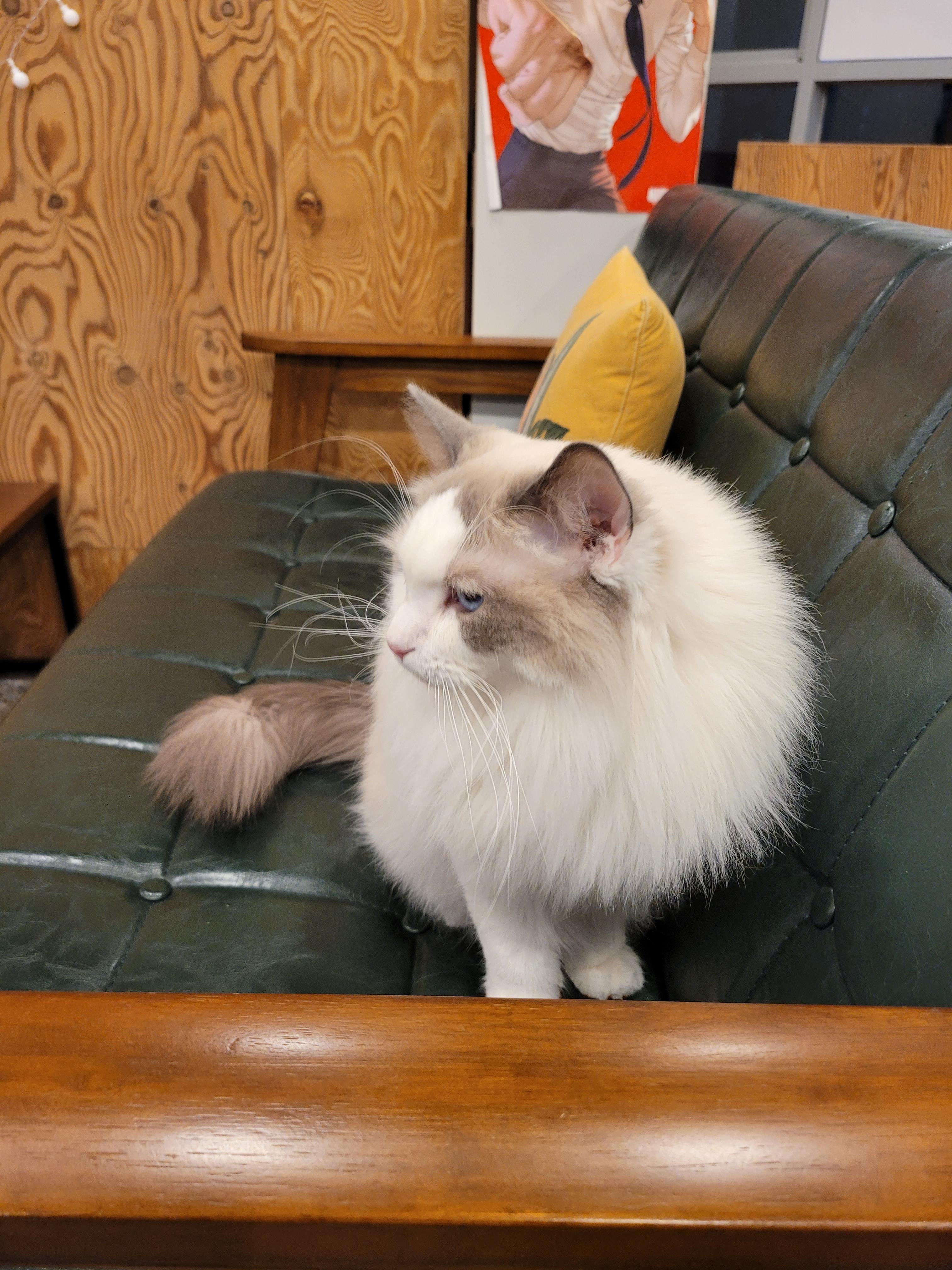 책을 둘러보다가 만난 이 아름다운 자태의 고양이의 이름은 루이! 6마리의 고양이 중에 막내를 담당하고 있는 정말 아름다운 고양이에요.