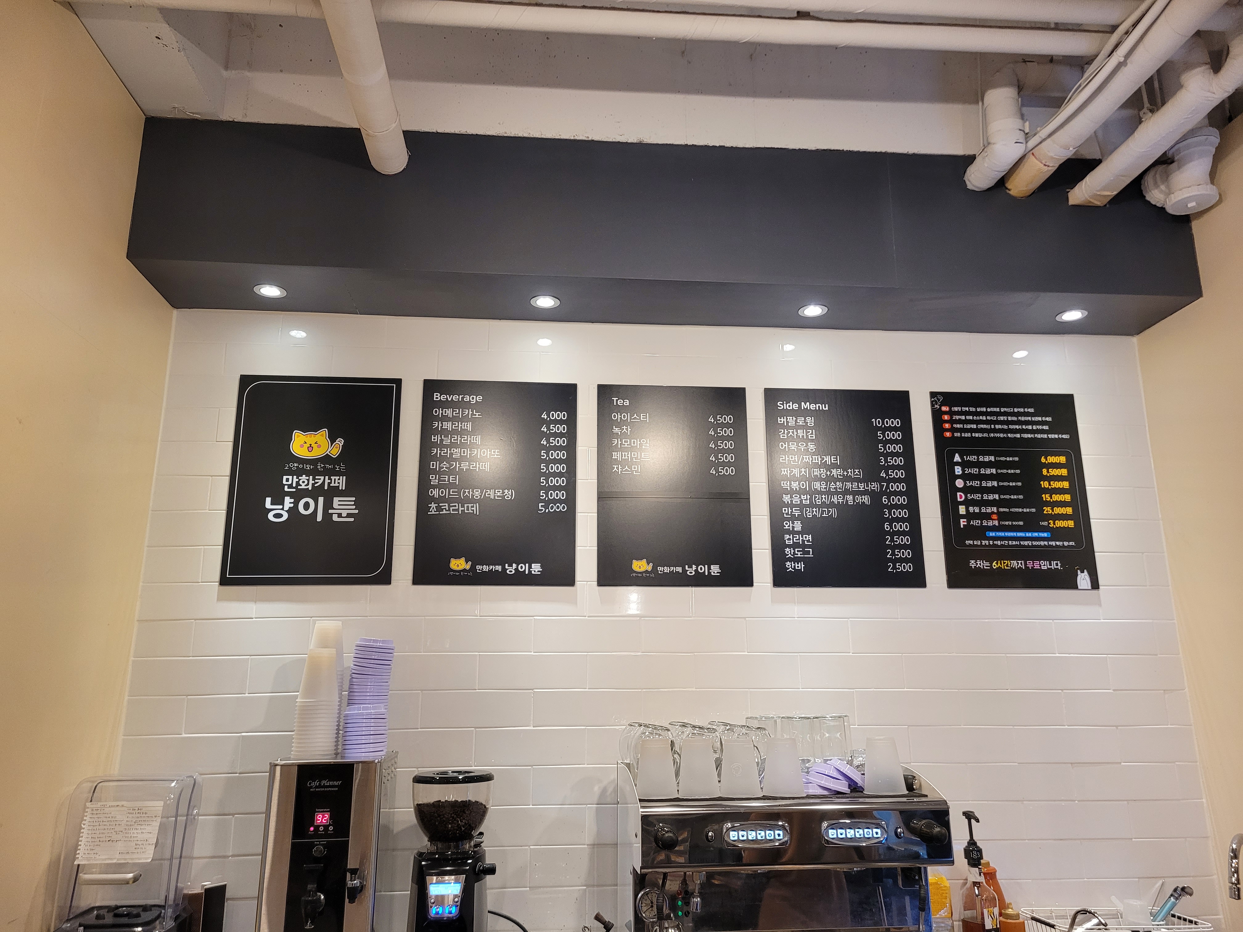 냥이툰은 시간제 요금제로 운영되고 있더라구요. 만화책만 볼 수도 있고, 음료가 포함된 요금제로 선택 할 수 있게 되어있었습니다.