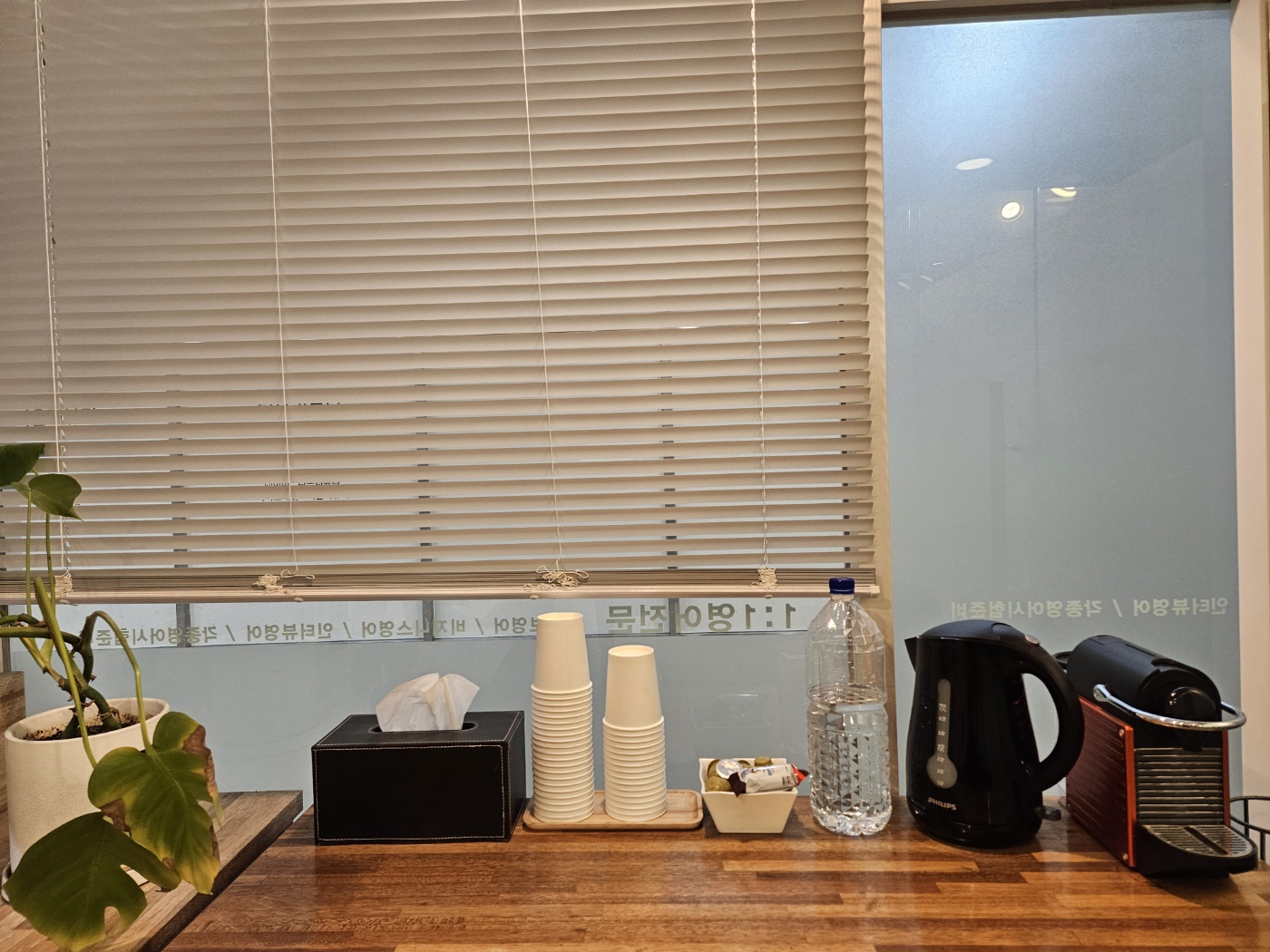 제가 예약 시간보다 조금 일찍 도착해서 수업중이신 강사님을 기다렸던 바테이블. 뭔가 직접 만든 느낌이 들고 카페에 앉아있는 느낌이라 신기했어요. 그리고 옆에는 작은 바가 있어서 커피를 내려 먹을 수도 있다고 안내가 되어 있었어요.