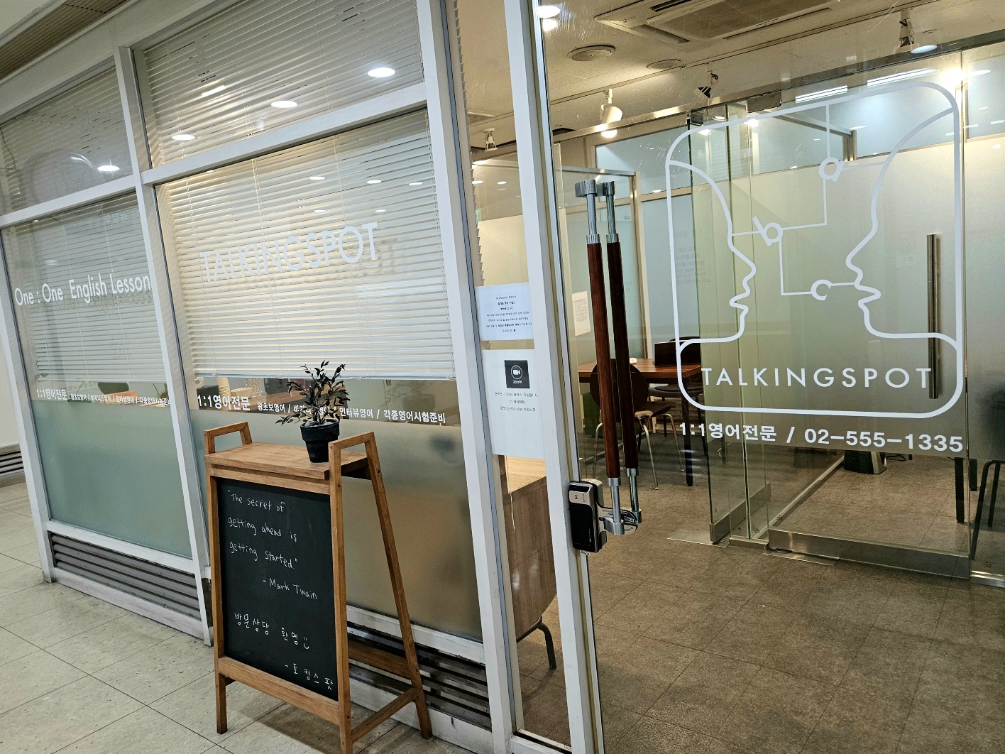 쌍용 플래티넘 밸류 라는 상가 안에 위치해 있는 토킹스팟은 주소는 B127호 라고 쓰여 있는데 사실상 1층 입구로 들어가면 바로 코너쪽에 위치하고 있어요. 저는 점심시간에 다녀오게 되었는데 알고보니 맛집이 엄청나게 많은 건물이라 사람이 어마어마 하더라구요. 평양냉면 맛집 을밀대 부터 시작해서, 춘천 닭갈비, 돈까스, 스시 맛집까지 대기타고 있는 사람들을 지나서 을밀대 옆에 위치한 토킹스팟에 도착하게 되었습니다.